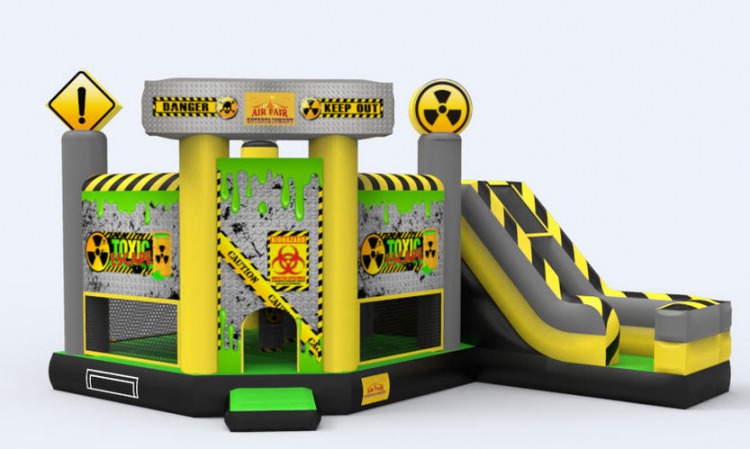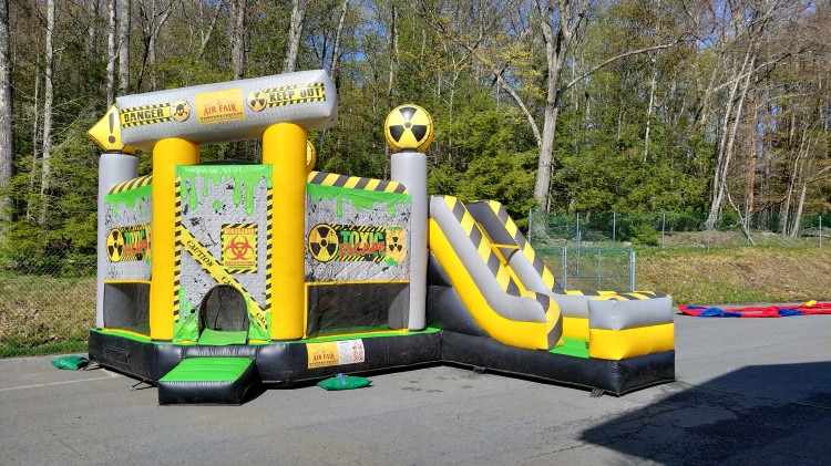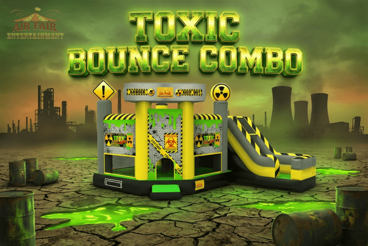 ⚠️ Embark on a delightful adventure with the Toxic Bounce Combo! Kids are in for a bouncing bonanza as they navigate obstacles and take the plunge down our toxic slide. The unit boasts vibrant shades of yellow, green, and black, creating a cool and fun industrial theme that adds an extra layer of excitement to the experience. This impressive bounce house is guaranteed to make a lasting impression on all your guests! 🤩🏰
