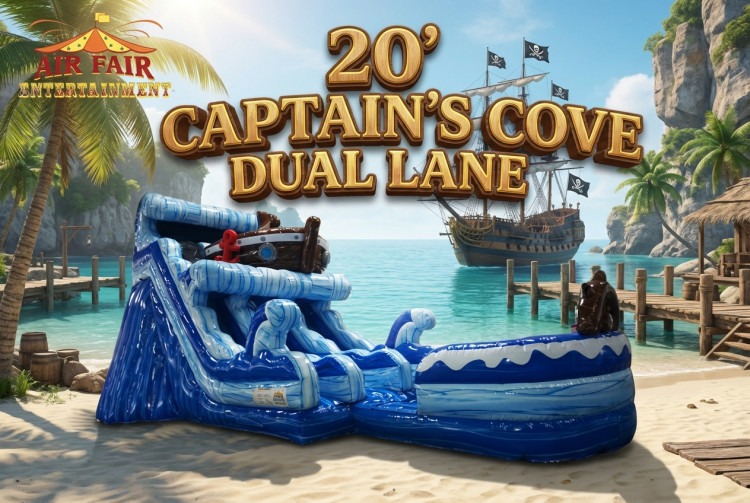🎉 Whether you're planning a pirate-themed birthday party or simply looking to add a splash of excitement to your event, the Captain's Cove Dual Lane water slide promises an unforgettable aquatic escapade. So, grab your tricorn hat and prepare to sail into a sea of laughter, fun, and refreshing splashes! 💦